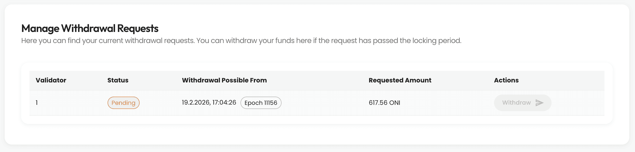🔁 Note: unlocking does not immediately return your tokens to your wallet. Once unlocked, you must create a withdrawal request.