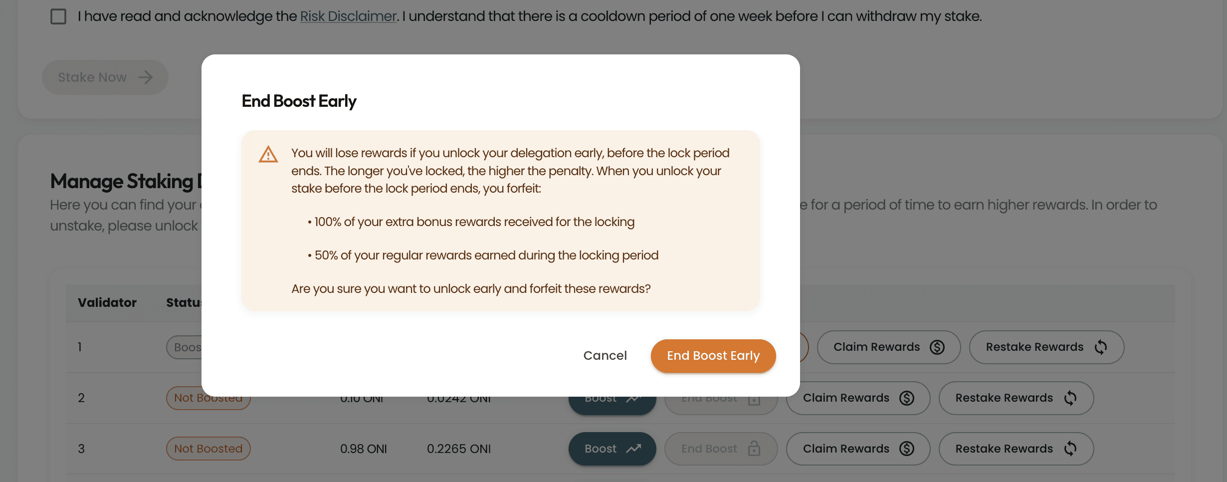 After unlocking, navigate to the “Unstake” tab in the ONINO Web Wallet.