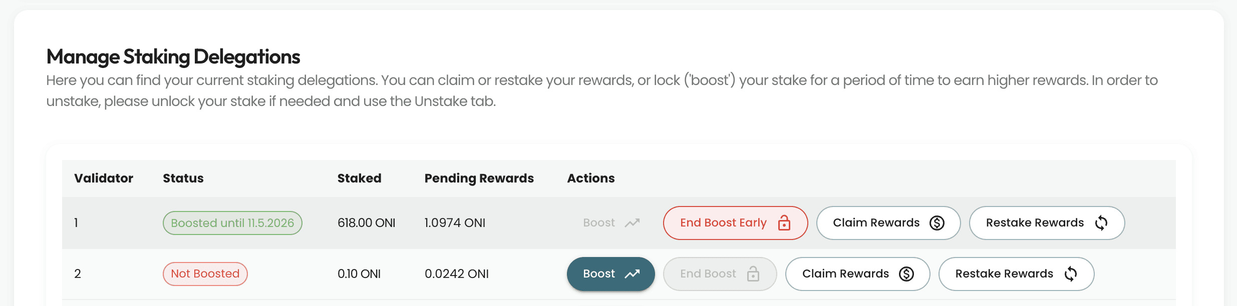 Other ONINO-operated validators will be sunset on a fixed date, and delegations to those validators will need to be migrated to the remaining validators.